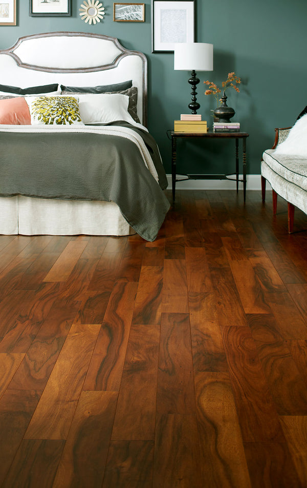The Melbourne Series is a 3/8-inch engineered Acacia hardwood flooring product that features distinctive swirling grain patterns and extraordinary color variations. The Small Leaf Acacia wood species ranks at an exceptional 2200 on the Janka Hardness Scale, making it one of the most durable hardwood flooring options on the market.