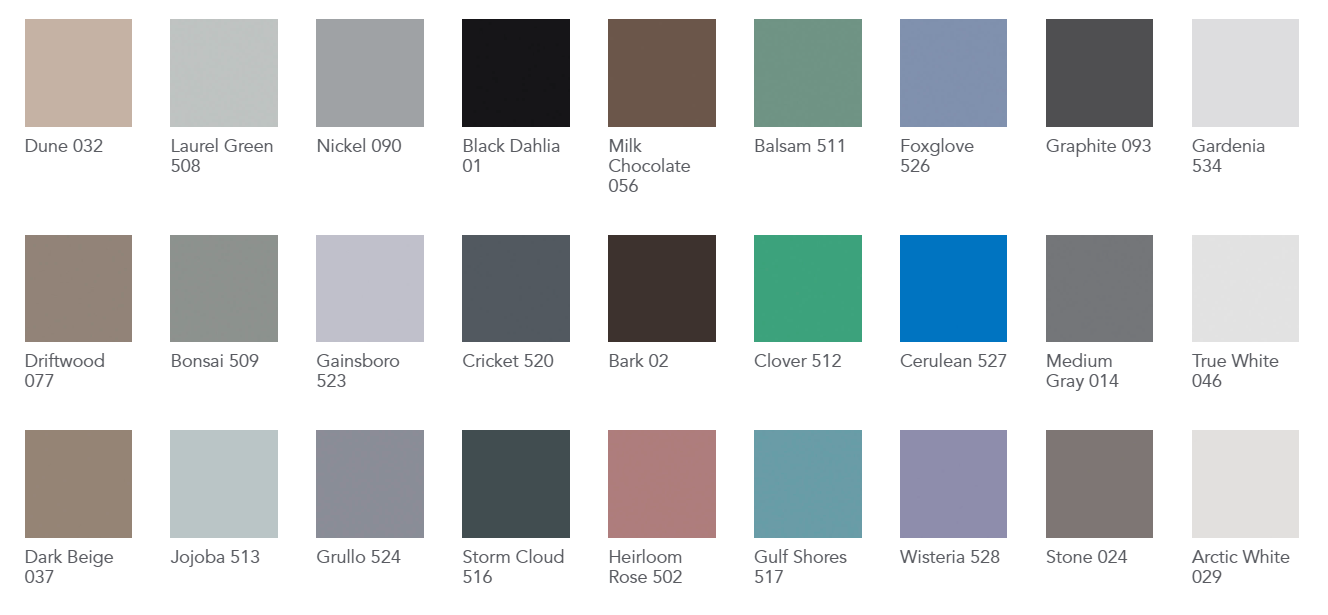 - Harmony, Merit, Charisma and Reflection profiles available in 40' coils for seamless installation