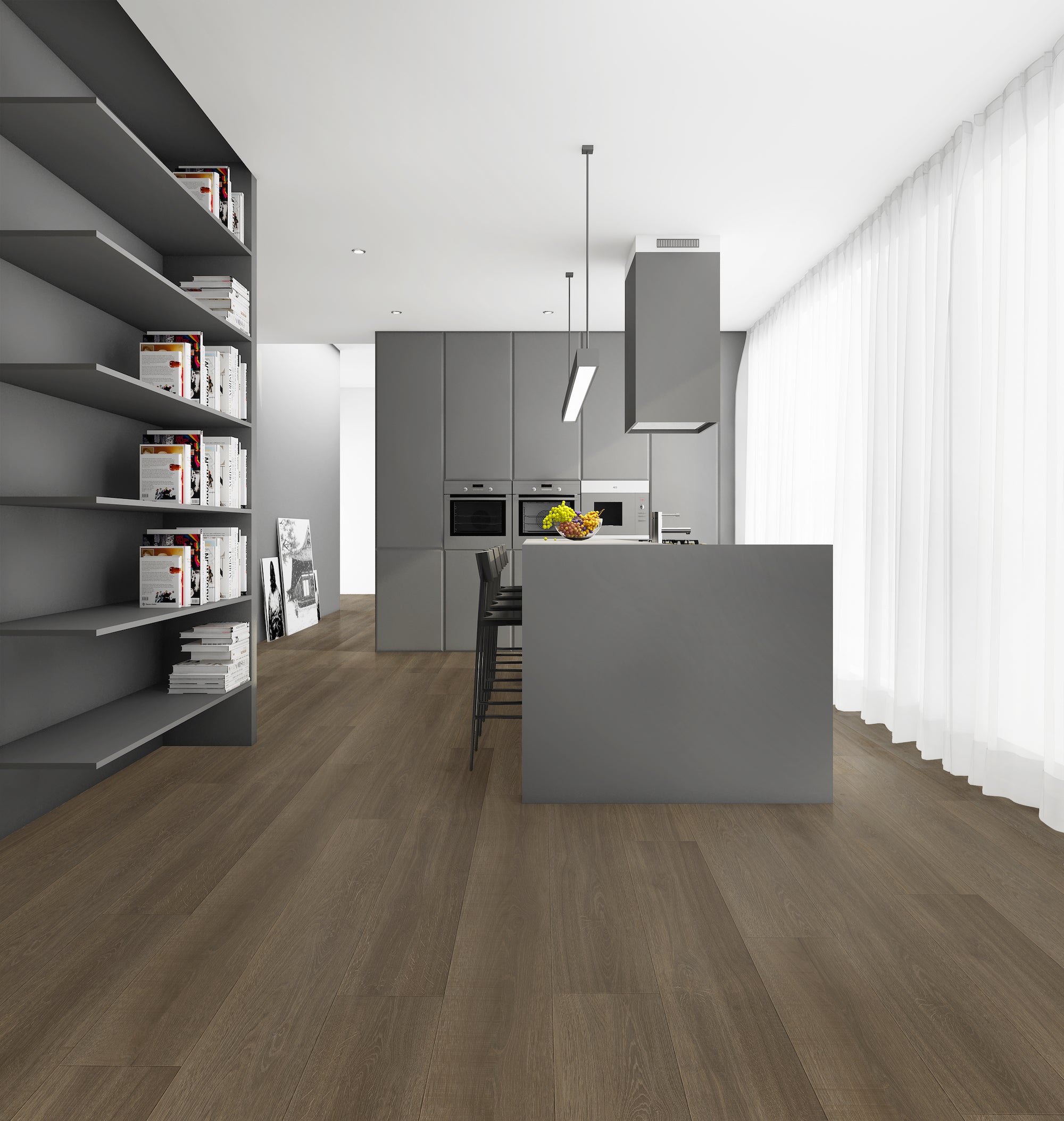 Sawatch Collection is a SPC rigid core floating floor that includes a 1.5mm EVA attached pad. This product line features embossed visuals for an authentic hardwood look and feel. 100% waterproof, 20mil wear layer, and coated with our signature Aluminer™ UV-cured aluminum oxide finish, we ensure exceptional performance against everyday spills and scratches making it a seamless choice for active lifestyles.