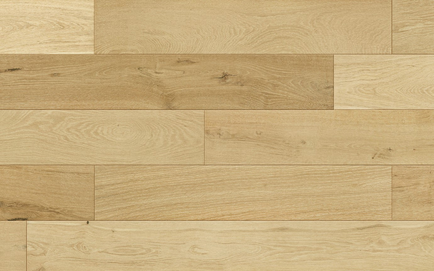 Immerse yourself in the coastal charm of our Beach House Collection, where the light-toned European Oak hardwood flooring echoes the serene beauty of a sandy beach. Let the flowing grain patterns, reminiscent of gentle waves, transport you to a seaside retreat right in your home.