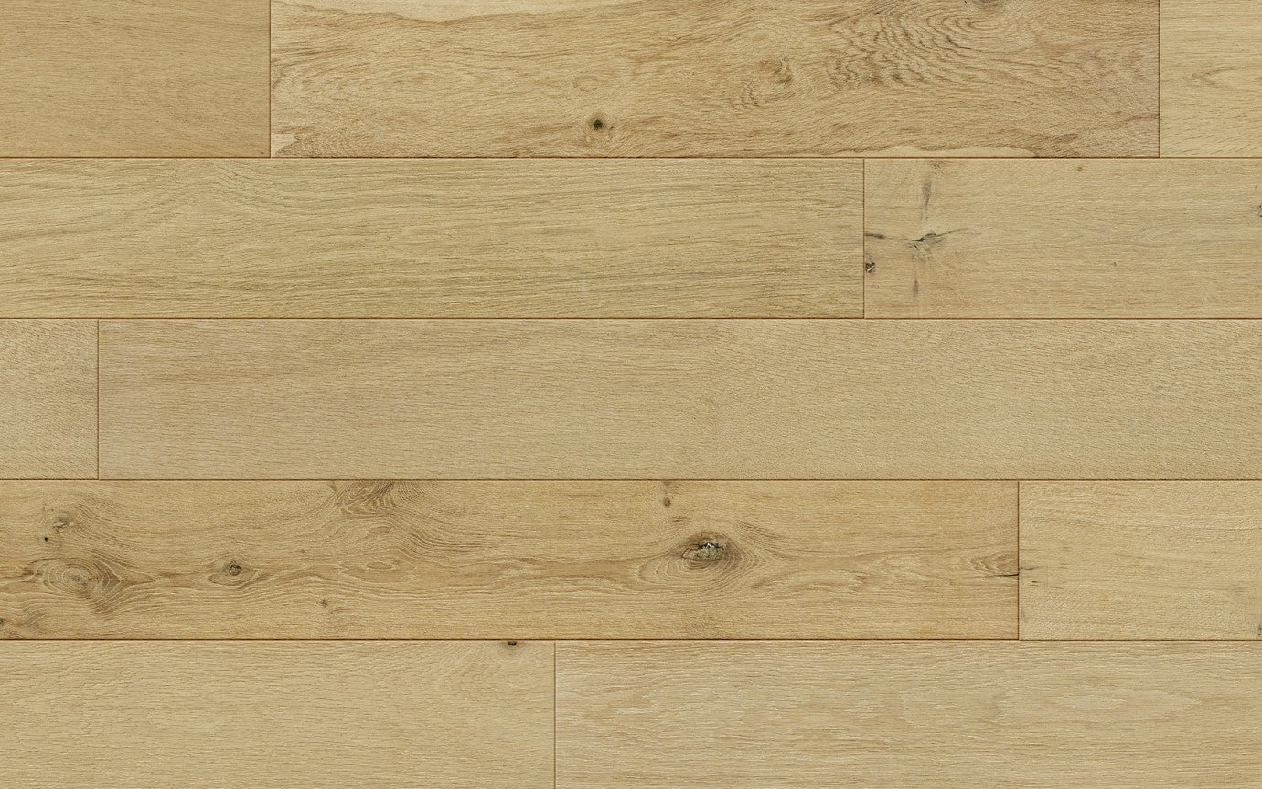Immerse yourself in the coastal charm of our Beach House Collection, where the light-toned European Oak hardwood flooring echoes the serene beauty of a sandy beach. Let the flowing grain patterns, reminiscent of gentle waves, transport you to a seaside retreat right in your home.
