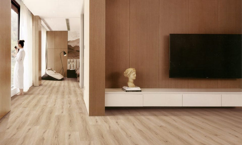 - Structure: Engineered luxury vinyl plank - 5/16” (8.3mm) overall thickness [1.8 LVT + 5mm WPC + 1.5mm Cork]