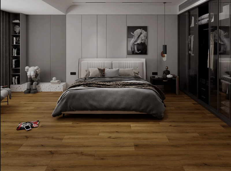 Structure: Engineered luxury vinyl plank (4.5m SPC + 1mm IXPE underlayment)