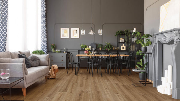 COREtec The Original has gone to great lengths, 82" in fact, to create an awe-inspiring floor that will set you apart in grand fashion. Bold in beauty and design, this unique and innovative floor comes with all the benefits expected from The Original. Each massive Grande plank is 100% Waterproof, kidproof, petproof and will stand up to life's real messes in style. The new 30 mil wear layer allows for the durability promised to you by The Original, without compromising the crisp and clear visuals of these magnificent designs. Continuous innovation, enhanced painted bevels and Embossed-In-Register technology create ultra-realistic visuals in this thick WPC plank that looks and feels like real hardwood. The easy to install angle-tap system allows for floating installations measured in hours, not days. After installation, these products are warmer underfoot because of the cork underlayment that is naturally resistant to odor causing mold and mildew, but real warmth is also found in Grande's style and looks. Even amongst the cooler and grey tones in the collection, Grande is authentic to the core.